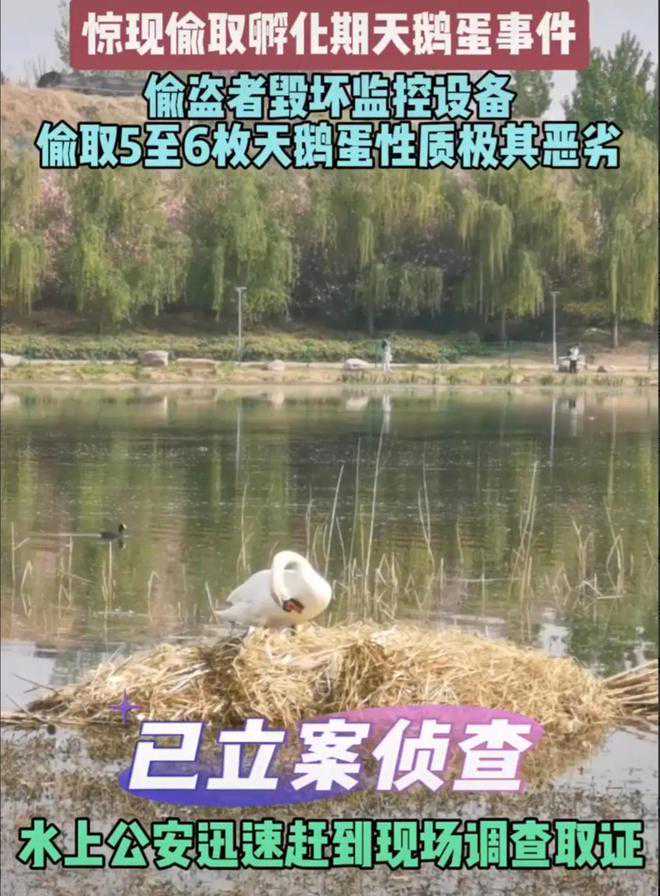 据目击者称,事发当晚曾有不明人员在天鹅湖附近徘徊,疑似作案者。这一行为不仅违反了法律法规,更是对生态环境的极大破坏。警方已经介入调查,并呼吁广大市民积极提供线索,协助找回被盗天鹅蛋。