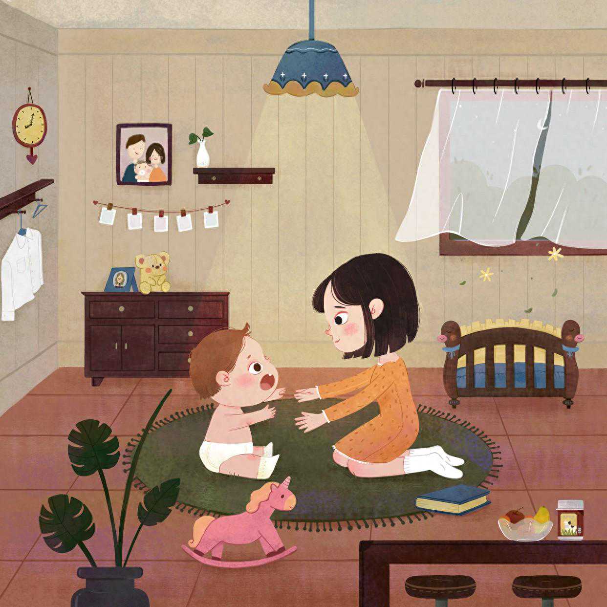 朋友来丽丽家做客,聊聊天,叙叙旧,孩子在一边缠着妈妈问东问西,一会儿要玩智力游戏,一会儿让念书,精力充沛,不让妈妈休息一会儿。