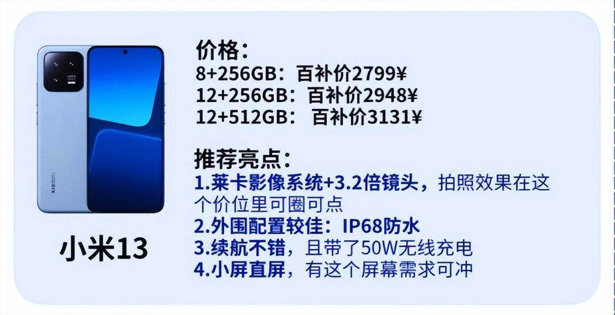 拍照,莱卡影像系统+3.2倍镜头,拍照很强!外围配置也很棒,还有IP68级防水哦!续航也很给力,还支持50W无线充电!如果你喜欢小屏直屏的话,直接冲。