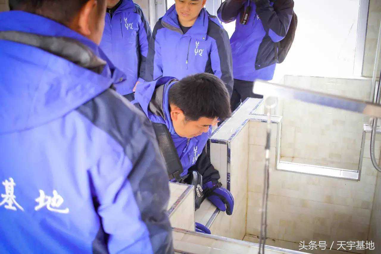 ▼来到基地的犬浴室,佐久间丈生等人对浴室的环境颇有兴趣。他们对这个特殊的凹型浴池产生了诸多联想,还不忘亲身体验了一下狗狗洗澡的感觉。