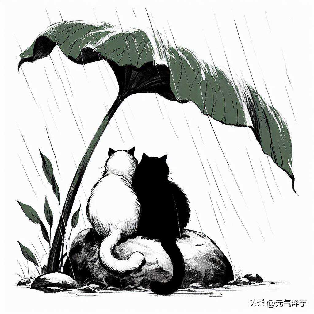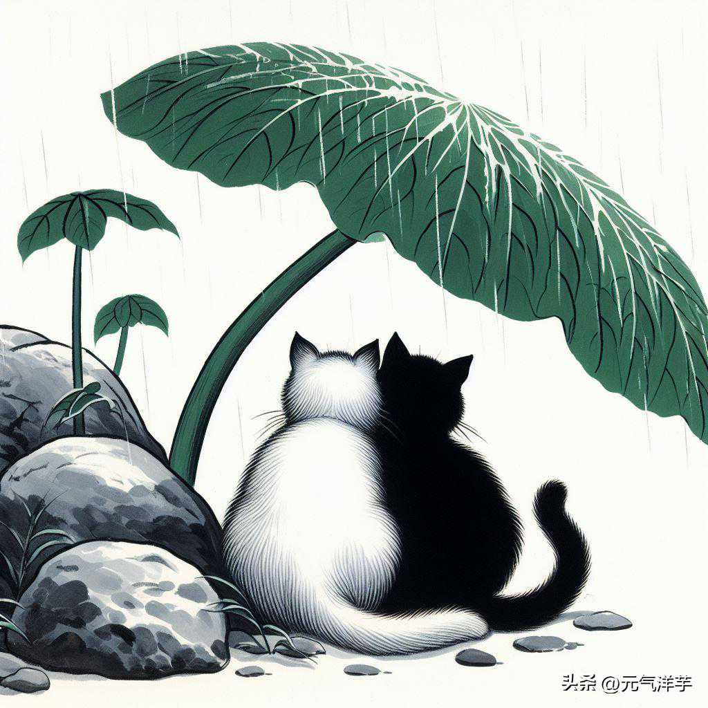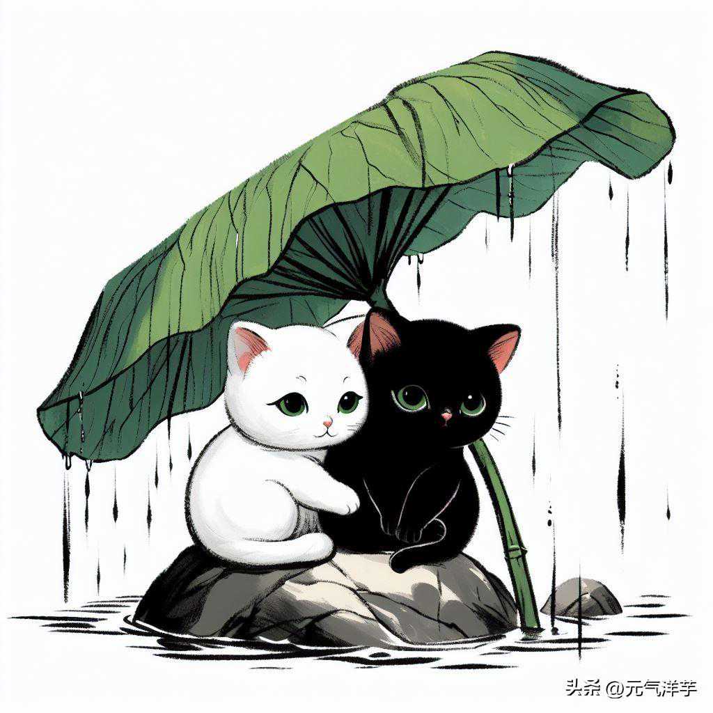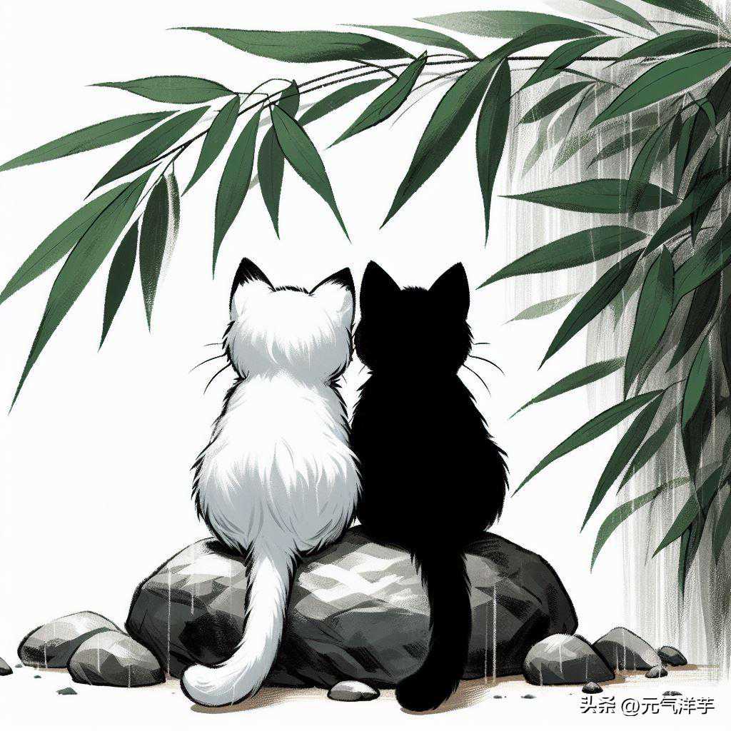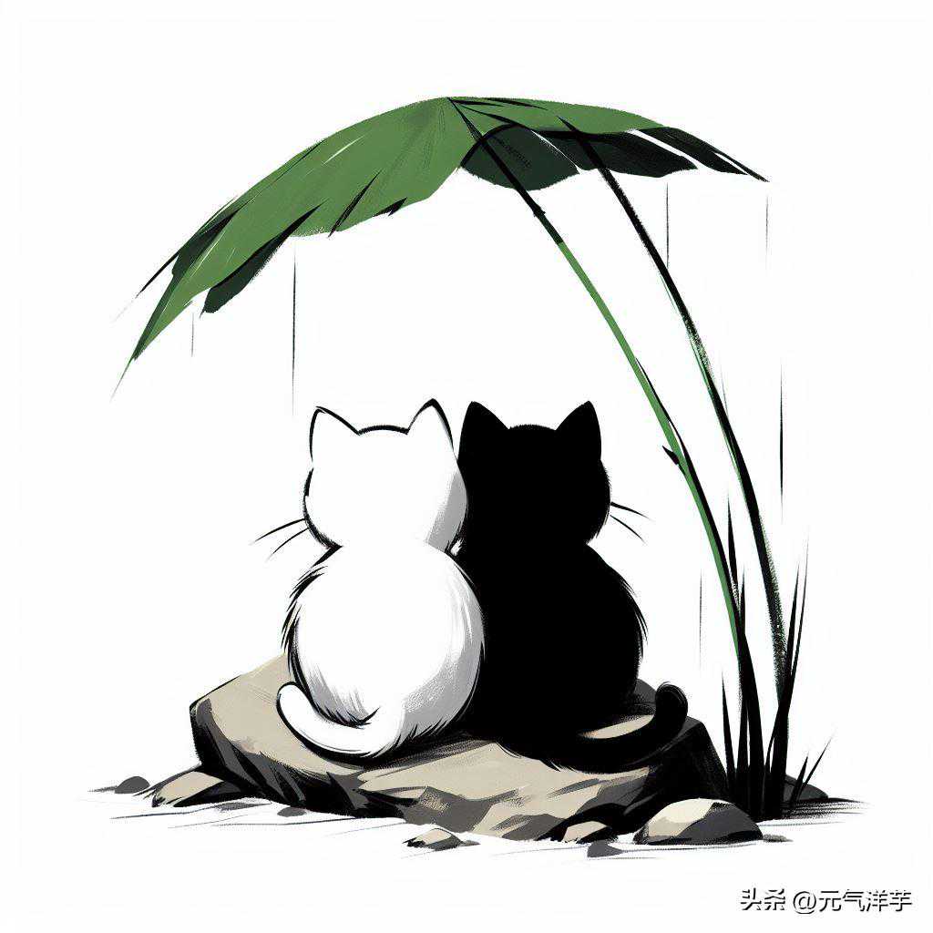 历程:最开始想到是清明节应该画个风景类的,但我好像对风景类的不是太擅长(放弃了),后来本是画的一只猫躲雨,但又觉得一只猫太孤单,换成两只猫了,直接的两只猫出的图又不是很好看,思来想去,黑色配白色,经典的配色应该是好看的吧?直接改了下描述,出来的还行,然后就有了后面这种背影的图,做多了,又觉得,全部都是这种背影也不太好,就有了前面的正面的图,整体来说,也算是一次还不错的实践。