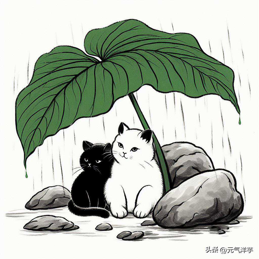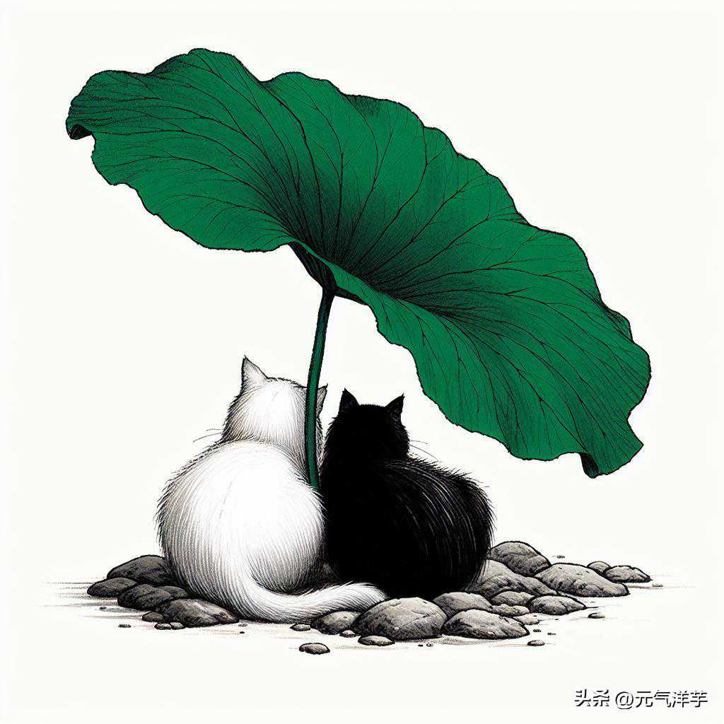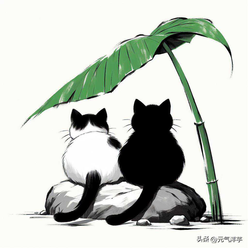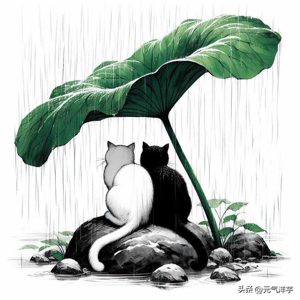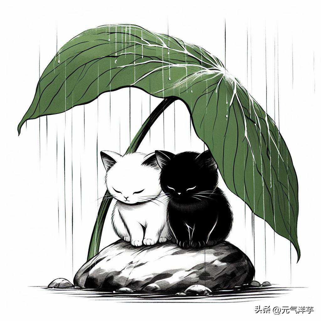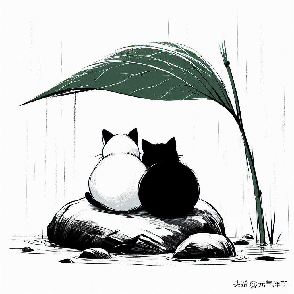 历程:最开始想到是清明节应该画个风景类的,但我好像对风景类的不是太擅长(放弃了),后来本是画的一只猫躲雨,但又觉得一只猫太孤单,换成两只猫了,直接的两只猫出的图又不是很好看,思来想去,黑色配白色,经典的配色应该是好看的吧?直接改了下描述,出来的还行,然后就有了后面这种背影的图,做多了,又觉得,全部都是这种背影也不太好,就有了前面的正面的图,整体来说,也算是一次还不错的实践。