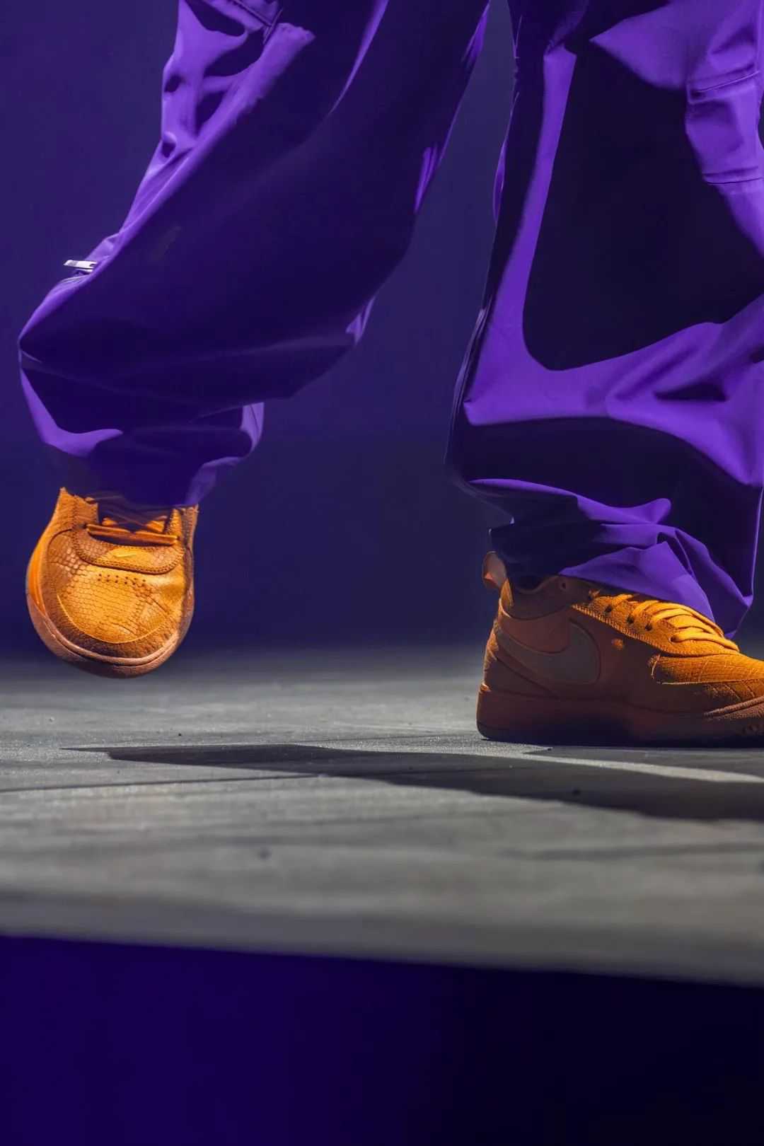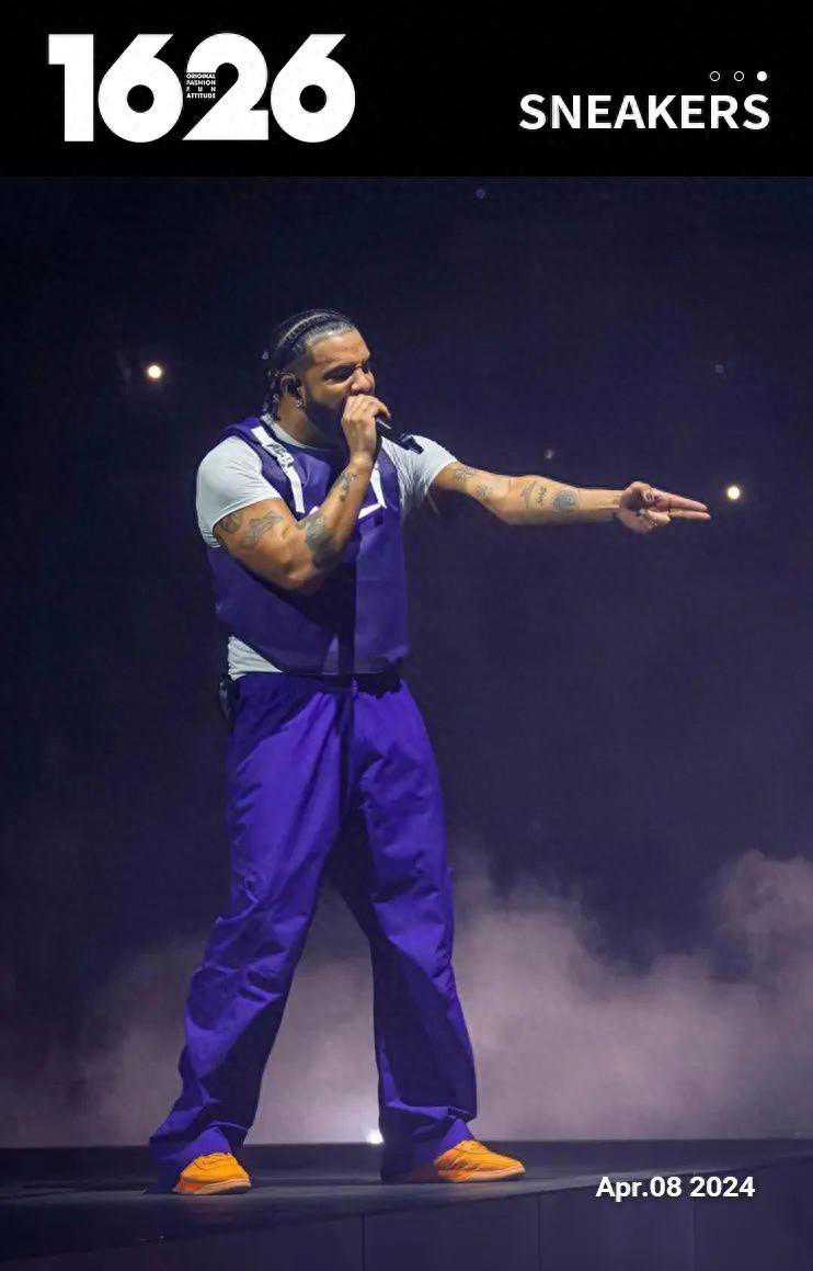 去年年底,Drake在亚利桑那州的一场音乐会上率先上脚了DevinBooker的首款Nike签名鞋Book1,紫色套装搭配橙色实战鞋,进一步突显了这双鞋的休闲属性。