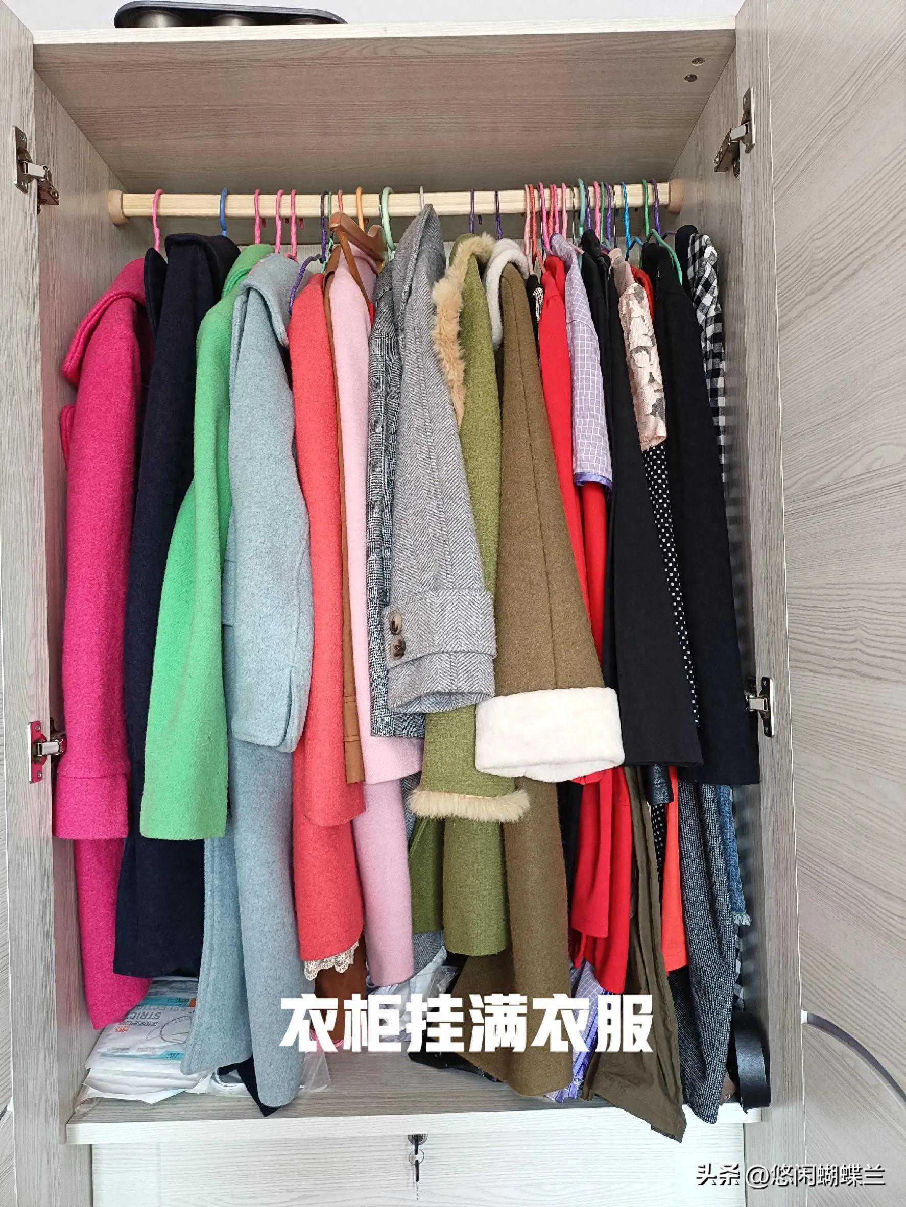 我的衣服很多,确实太占空间了,一个大衣柜都装满了,贮藏室还挂满了衣服,最后,羽绒服实在没地方放了,就放到了床上。