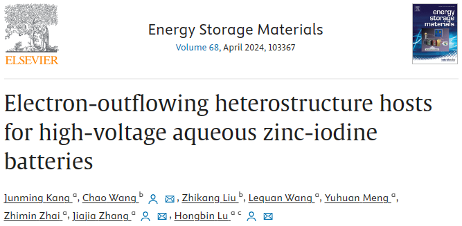 复旦大学卢红斌教授、同济大学王超研究员,EnergyStorageMaterials:通过电子外流的异质结宿主实现氧化还原反应