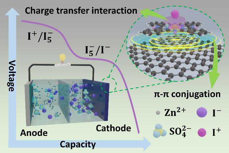 图1.通过异质结宿主实现的高压水系锌碘电池示意图。
