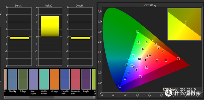 还有NEX屏幕的Delta值(色彩偏离度),达到了惊人的7.08和14.1(平均/最大)。色彩准确性非常糟糕。结合ColorChecker的校色结果。校样点有夸张到离谱的外扩,意味着NEX屏幕存在很严重的色彩过艳问题。