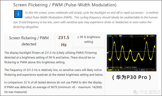 同时,NBC还是目前绝无仅有,对调光频闪有较详细测试的媒体。低频PWM、高频PWM、还是DC调光。调光临界值在哪,都记录的清清楚楚。