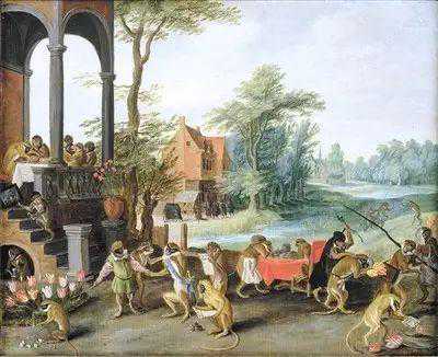 ▲这幅画记载了当时荷兰人陷入狂热,像猴子般参与郁金香的投机与炒作。图/新京报网