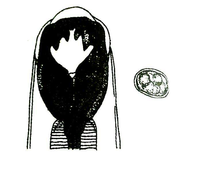 (6)新鲜粪便用使用饱和盐水漂浮法检查,易检查到虫卵,其特征是卵壳薄,椭圆形,虫卵大小为(50~60微米)X(37~43微米)。(饱和盐水不明白的可以留言)