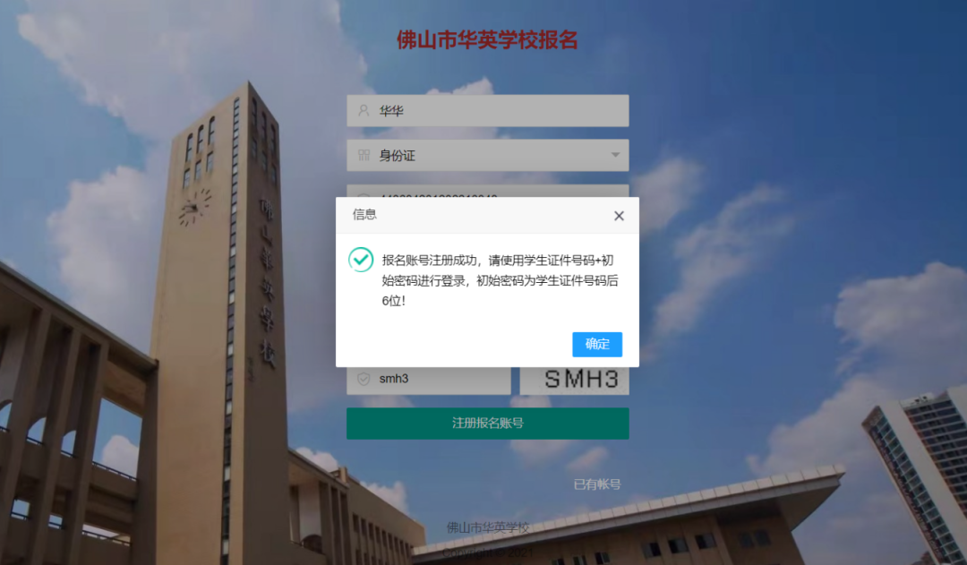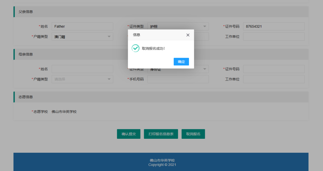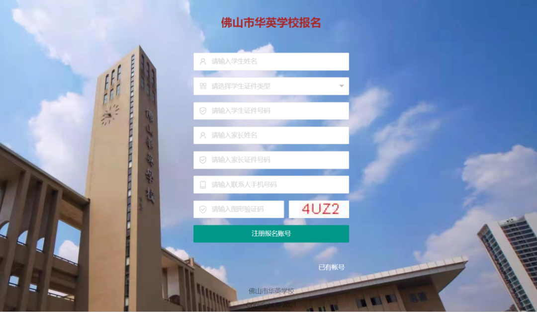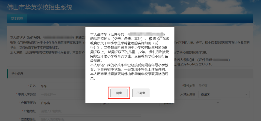 进入信息填报前请认真阅读《承诺书》。初中招收接受完规定年限小学教育且不具有初中学籍的学生。(一经发现不符合上述条件的,直接取消佛山市华英学校录取资格。由此造成的一切后果由家长负责。)