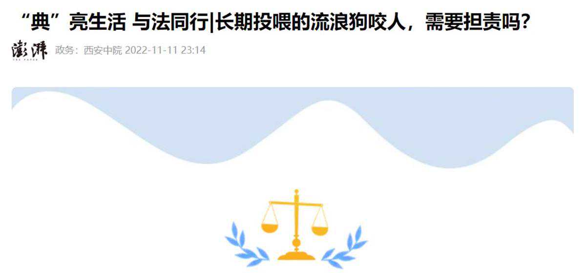 据11月17日奔流新闻报道,近日,陕西西安阎良区法院审理一起流浪狗咬人案,判决投喂人赔偿伤者医药费3243元。此事引来网友争议,认为好心投喂流浪狗还错了?