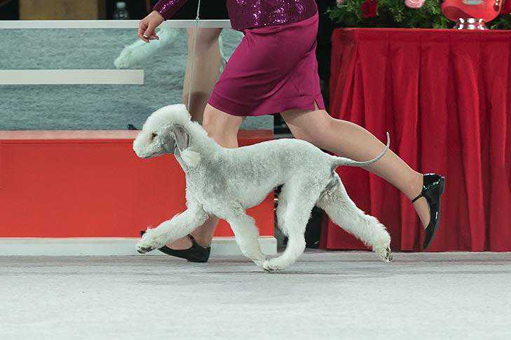 (犬展上做展示的贝灵顿梗)