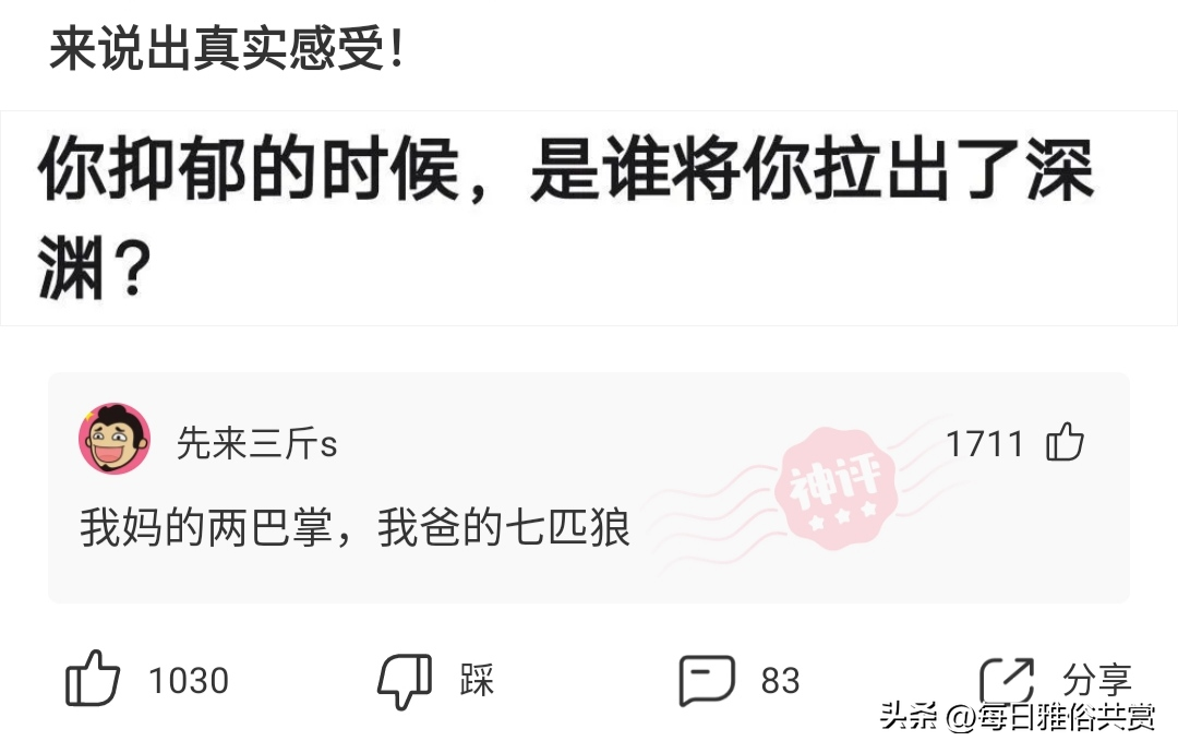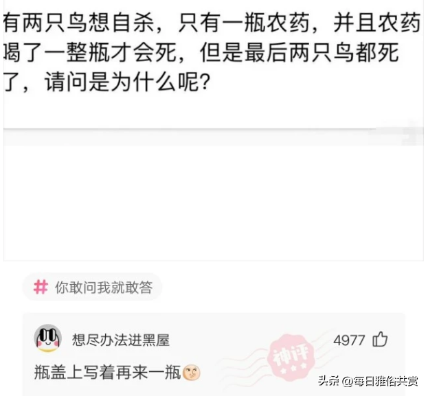【盐选神回复】年少不知姐姐,好想把少女当成宝 2025-03-24 09:26:54• yanghuzhishi • 阅读 543 1.我新开的火锅店,为什么生意那么差?我菜品很多啊! 2.年少不知姐姐,好想把少女当成宝 3.我该怎么解释呢! 4.炸金花拿到这牌,突然你女友打电话让你立马回家,你会怎么办? 5.怎么才能委婉地让她穿上鞋,脚有点臭,看是女孩不好意思说! 6.“我咋就没碰着这么心善的妹子!”哈哈哈兄弟艳福不浅啊 7.朋友们,谁能解释一下这张图是什么意思? 8.大山沟沟里逮的,不知道能不能吃? 8.感觉能学到不少专业术语 9.瞬间思路清晰多了 10.两只鸟想自杀,只有一瓶毒药,并且喝了一瓶才会死,但是两只都死了,是为什么? 11.只想陪你一辈子 12.你抑郁的时候,是谁将你拉出了深渊? 13.安踏鸿星尔克都捐了5000万,为什么鸿星尔克的社会反响大这么多? 14.这不是人才又是什么? 15.最喜欢男孩子微信昵称叫“风”我该起个什么名字暗示他,我喜欢他? 16.为什么美国不考古?铁子们来聊! 17.喜欢起名的来过了 18.想退休了,就是不让我退休 19.刚被科普了新的计时单位:一东=2分钟! 20.这番薯怎么才能卖出去? 21.这不是纯纯的孙子吗 22.希望有生之年能有幸坐一次飞机。 23.估计我要凭一己之力改变这家店的规则了。 23.警察为什么认为这个男子并不是自杀 版权声明:本站所有作品(图文、音视频)均由用户自行上传分享,仅供网友学习交流,不声明或保证其内容的正确性,如发现本站有涉嫌抄袭侵权/违法违规的内容。请举报,一经查实,本站将立刻删除。 相关推荐 怎么给狗狗剪指甲 剪到血线了如何处理? 2025-03-24 09:26:54 沙漠里遍地的“西瓜”,为什么无人敢吃?当地人:吃一个试试 2025-03-24 09:26:54 做过胎梦的孕妈是什么感受?网友:梦见小孩跟着我,然后就怀孕了 2025-03-24 09:26:54 中美俄进入战备状态,全球紧张局势加剧 2025-03-24 09:26:54 揭秘天安门起飞的10万只和平鸽:最快的几分钟飞回家,主人必须打疫苗 2025-03-24 09:26:54 猫咪的进食小秘密!原来这样喂猫,都是有依据的 2025-03-24 09:26:54 今天上午,新干这36家单位在广场上“摆摊设点”...... 2025-03-24 09:26:54 Google Photos 现在可以辨别猫、狗的品种了 2025-03-24 09:26:54 拳打保罗的那个男人宣布退役了! 2025-03-24 09:26:54 “橘猫”凭什么比宠物猫更受欢迎?网友:养了就不想换猫了 2025-03-24 09:26:54