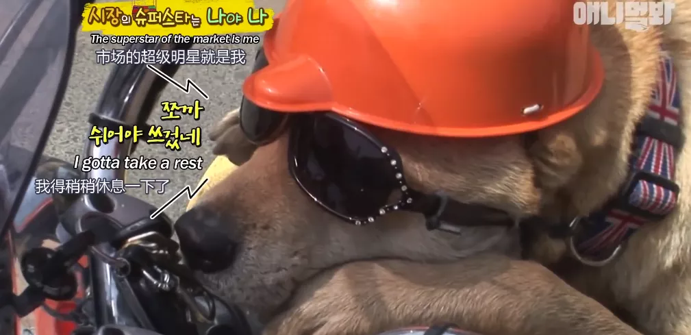 作为市场的人气明星,大叔立马就给它戴上墨镜,当模特吸引场子。