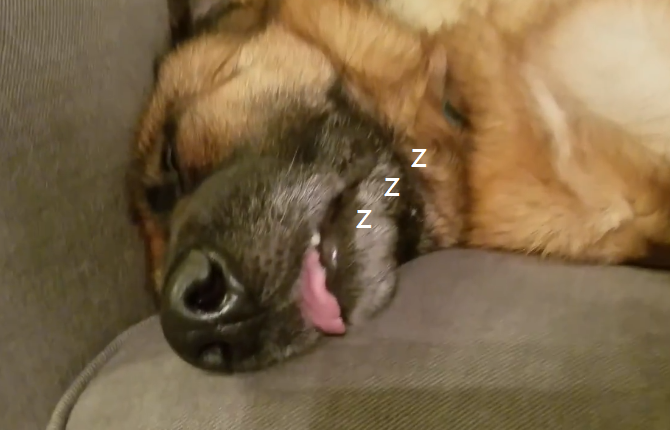 于是这次主人带朋友回家时,开门后却发现德牧正在呼呼大睡,而且宠主在旁边叫了它好一会儿都没反应,最后是主人摸了摸它的头了,狗子才从睡梦中醒过来。