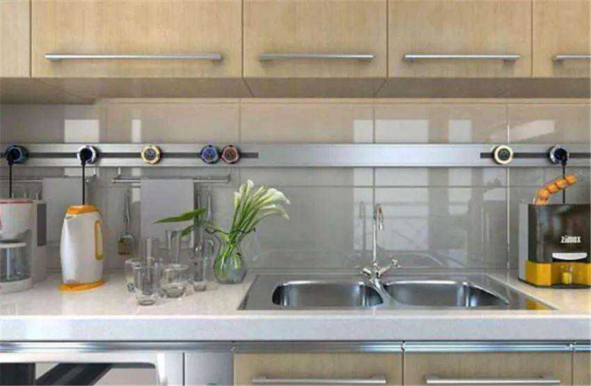 厨房内插座要提前预留好,而且各个插座高度要适宜。通常插座距离台面的高度在150mm即可,地柜内插座高度为500mm左右;