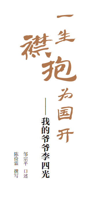 江苏凤凰科学技术出版社新近出版的《一生襟抱为国开——我的爷爷李四光》一书,以李四光的人生画卷为主线,其外孙女邹宗平通过回忆与李四光晚年共同生活十八年的点点滴滴,披露了不为人知的感人细节,将一个个看似独立又暗含联系的小故事娓娓道来。邹宗平口中的李四光是朴素而多彩、立体且生动的,书中不仅描写了李四光呕心沥血为新中国的发展奉献自己的心路历程,也让我们看到了一位慈祥的爷爷,他疼爱着外孙女,关爱、尊重和引导着晚辈的成长,如炬般照亮了前行的路。