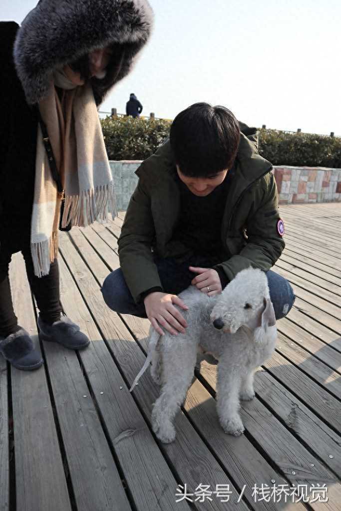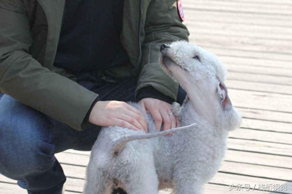 2018年2月16日,贝灵顿绠犬在青岛金沙滩海水浴场卖萌,人见人爱。勇敢而充满自信。是一个聪明的伙伴,具有很强的运动能力。脾气好,天性温柔,威猛,但不害羞或紧张。睡眠时温和,但醒来时却勇气实足。