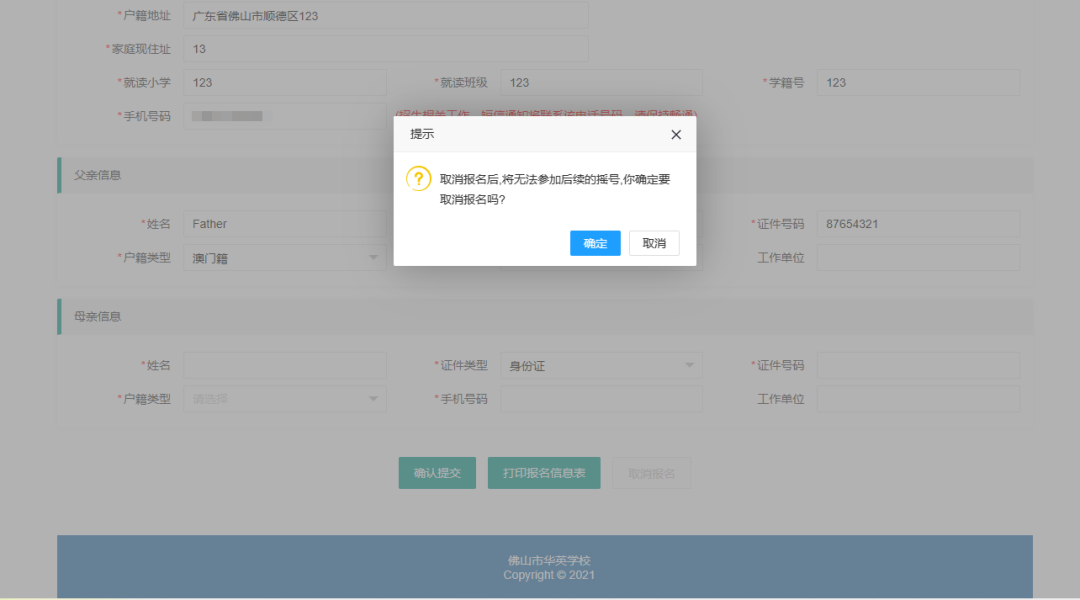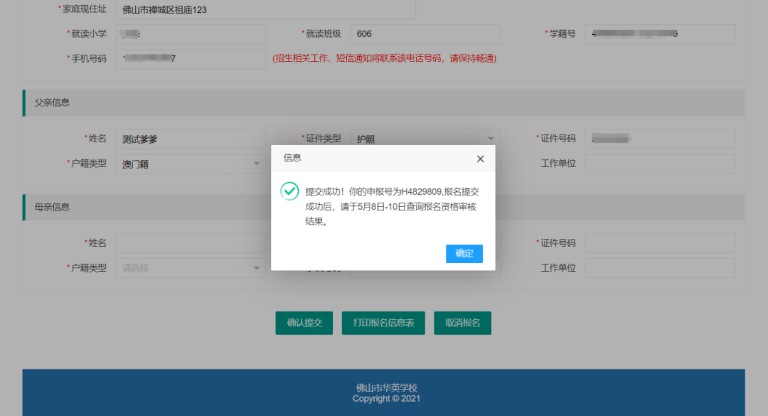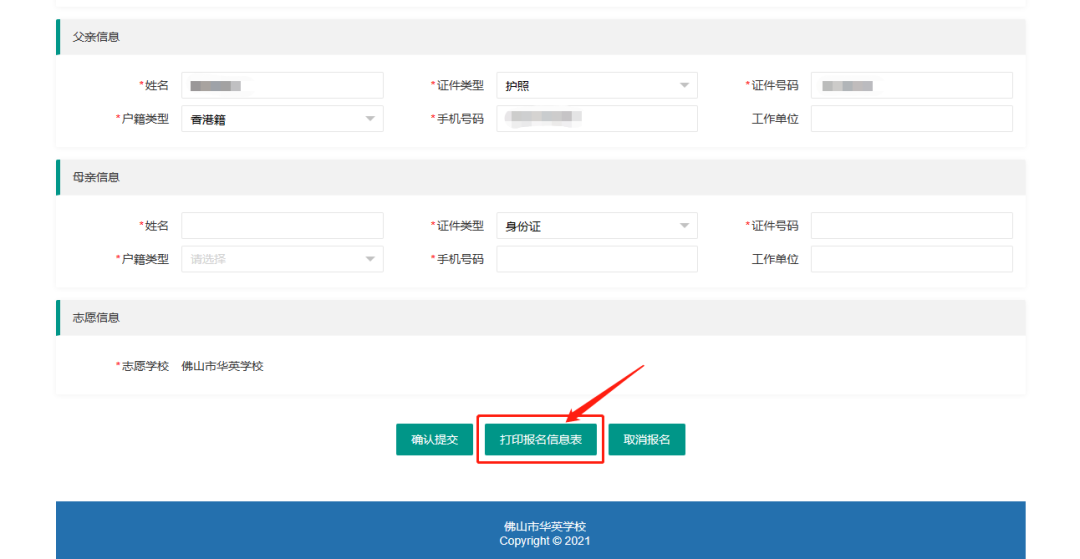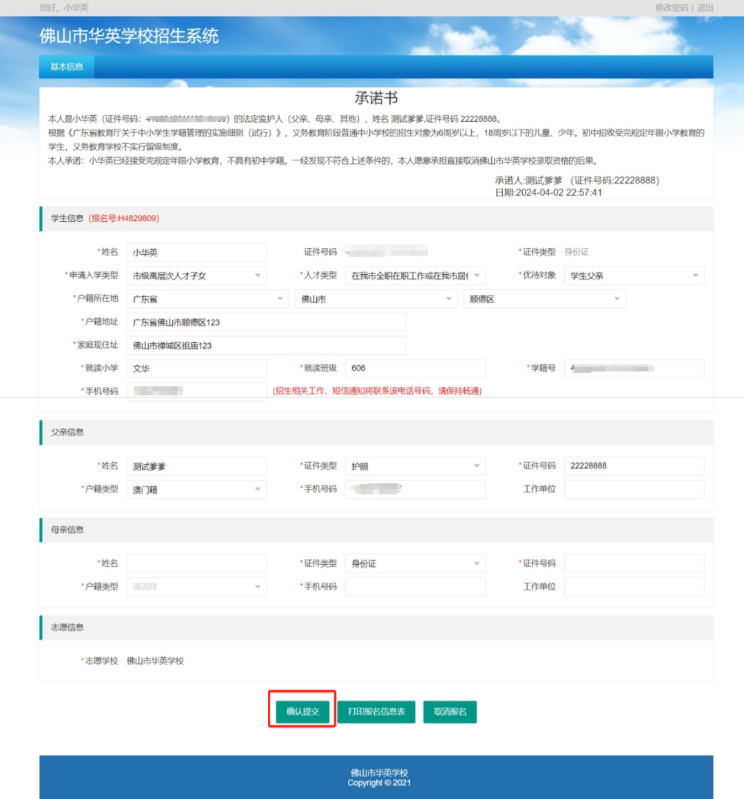 进入信息填报前请认真阅读《承诺书》。初中招收接受完规定年限小学教育且不具有初中学籍的学生。(一经发现不符合上述条件的,直接取消佛山市华英学校录取资格。由此造成的一切后果由家长负责。)