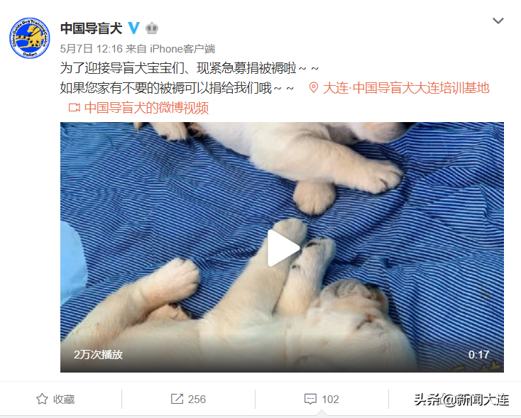近日,@中国导盲犬官方微博发文求助,为了迎接扎堆出生的导盲犬宝宝们,现紧急募捐旧被褥。