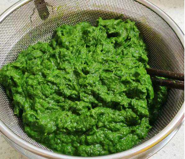 3、准备好的鼠曲草放入搅碎机里搅成鼠曲草泥。