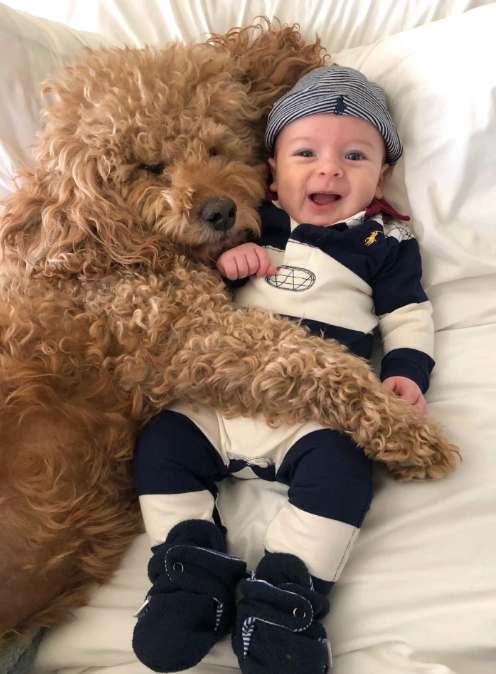 杰西卡觉得,自家儿子是一个很沉着冷静的宝宝,而他这样的表现有一部分是来自于遗传和他的性格,而另一部分确实狗狗带来的效果。