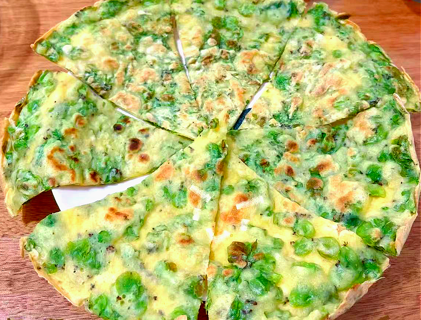 6、出锅切小片装盘即可,这样一道家常版的:榆钱鸡蛋饼就做好啦。