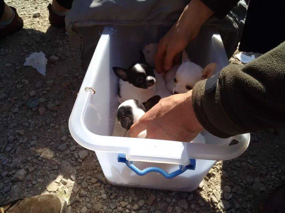 图为商贩正在兜售自己的吉娃娃,围观的买主很多,有几个年轻的买主已经蹲到箱子前开始了挑选。这些吉娃娃远看时还是不错的,但是可以初步判断出它们的血统并不纯正,但是整体的品相都挺棒,应该是略微串了一下,并不是直接换了其他犬种进行杂交培育。但是既便如此,商户的报价也稍微有些高了,大多数情况下,品相不错的纯种吉娃娃一般价格在800-1500元左右,但是商户的这些吉娃娃很明显是串过的,却仍要1300元的高价。