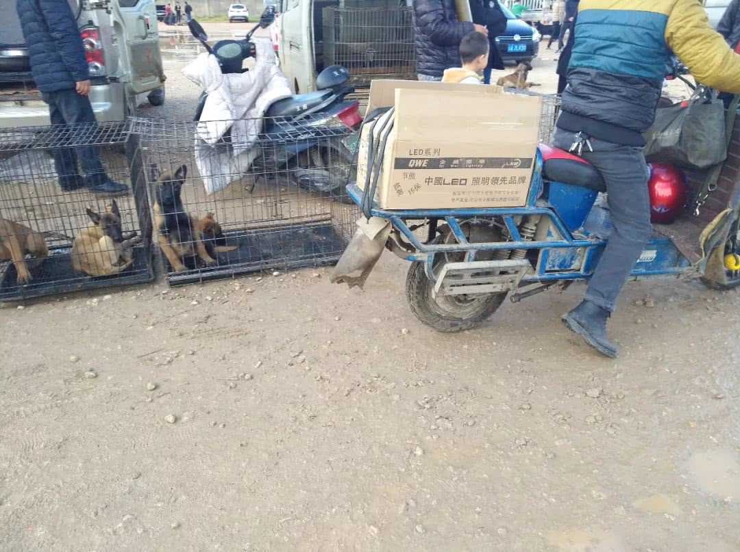图中的商贩正准备出售自己带来的马犬幼犬,可以看到这位商贩带来的马犬数量非常多,看样子这个商贩应该是一个专门做养殖的饲养场运营者,由于现在市场刚刚开放不久,几乎没有什么顾客,而这个时间段正好是二道商贩们收购幼犬的时间。这样也把品相优质的马犬被展示出来,立刻就吸引了不少人的围观,大家都对这些幼犬比较感兴趣。