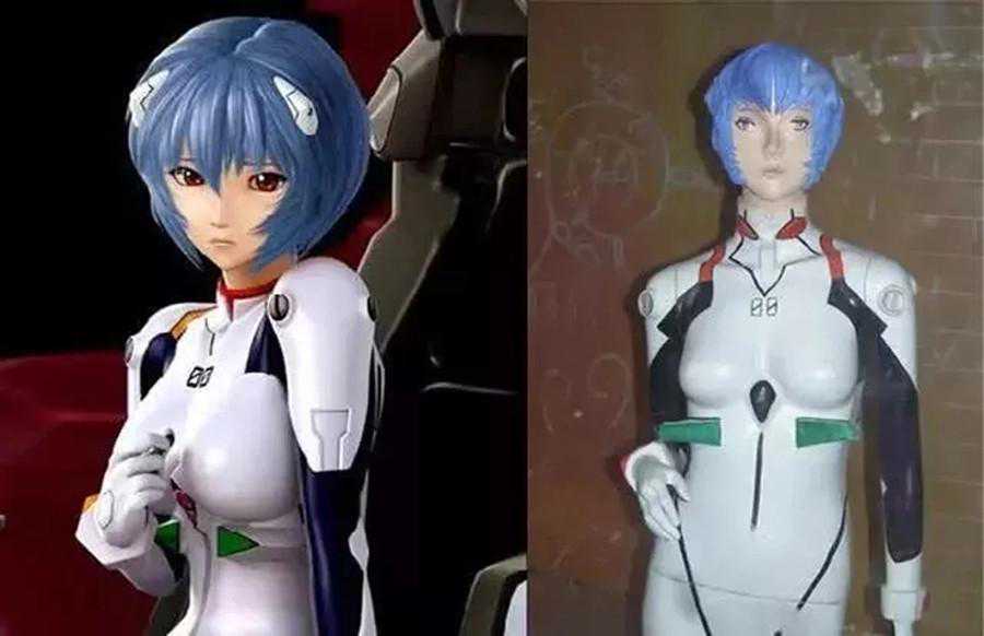 再来看看这款经典的绫波丽手办,《EVA》中的女神级人物。经过国内某些手办加工厂的加工制造之后,绫波丽被做成了这个模样!确定晚上放在桌上,不会被吓醒吗?