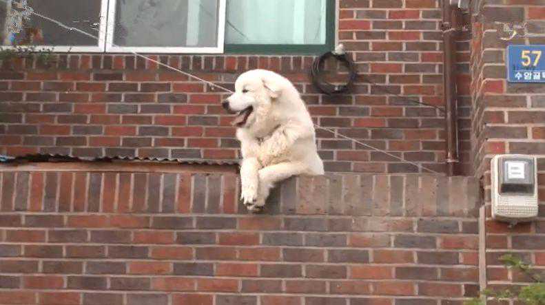 狗狗默默又趴在了墙头,这时候,我们好像看出来了,狗狗好像并不是被主人强行留在家里太寂寞,而是.