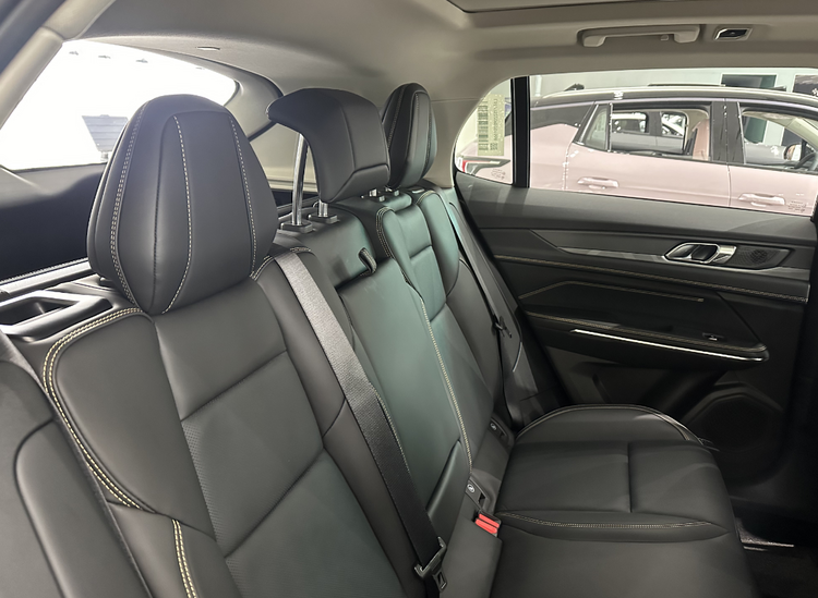 新车的内饰同样和现款车型保持一致,环抱式座舱设计大方,中控台的层次感分明,细节处装饰了高亮的黑色饰条以及银色饰条来提升质感,部分区域采用的是皮质材料包裹,缝线勾勒的比较清晰,档次感营造的比较不错。12.8英寸中控屏以及12.3英寸全液晶仪表盘强调了科技感,中控屏内置的是8155芯片,多功能方向盘处理的较为运动,操控台区域保持一定角度的倾斜,电子换挡杆的造型厚实。一体式的前排座椅造型运动,支撑性和包裹性不错。