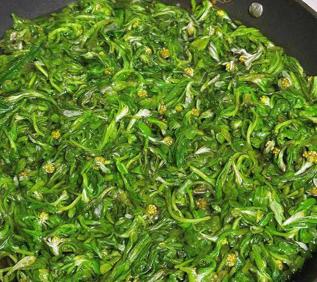 2、鼠曲草沸水下锅焯水一下捞起。(焯水加点小苏打可以起到固色的作用)。