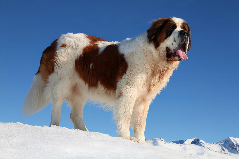 圣伯纳犬又称为阿尔卑斯山獒,原产于瑞士,是一种超大型的犬种,也是瑞士的国宝动物,主要被用于山地救援犬。据说在很久以前,圣伯纳犬为守护穿越危险的阿尔卑斯山的旅客而闻名于世,它们的体重能达到100公斤,身高更是达到1米,是世界体型最大的犬种之一。
