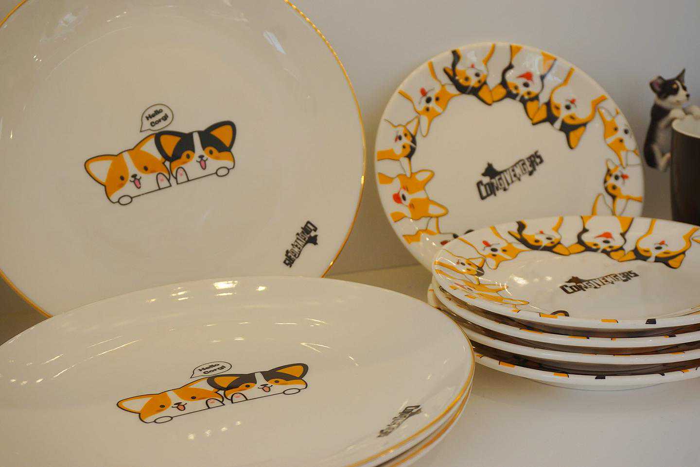 走进大门,首先吸引眼球的各种带有柯基元素的各种周边,毛巾,拖鞋,杯子,卫衣,背包,还有很多可爱的小玩意儿。看到就想把它们都带回家的冲动。店里的环境特别好,清洁干净。