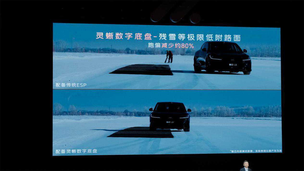 同时,「灵蜥底盘」让智己L6在单侧残雪、积水等路面上,车辆跑偏减少约80%,最大程度保持行驶稳定性。