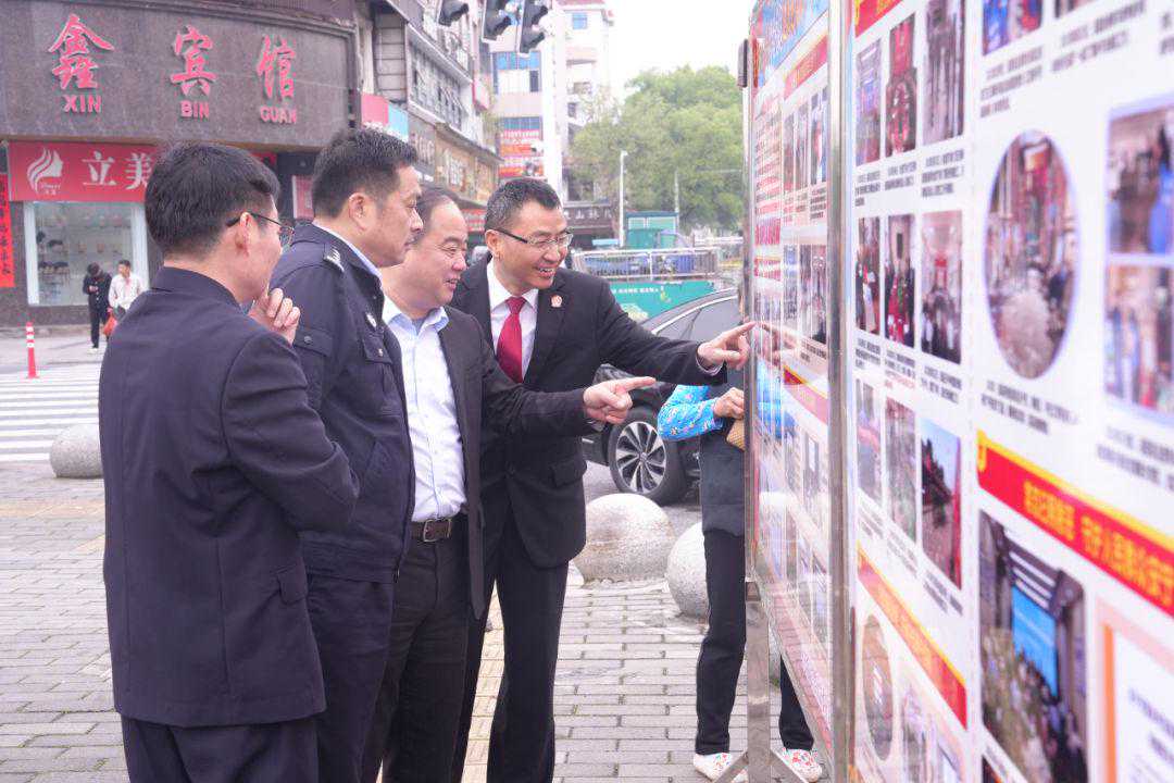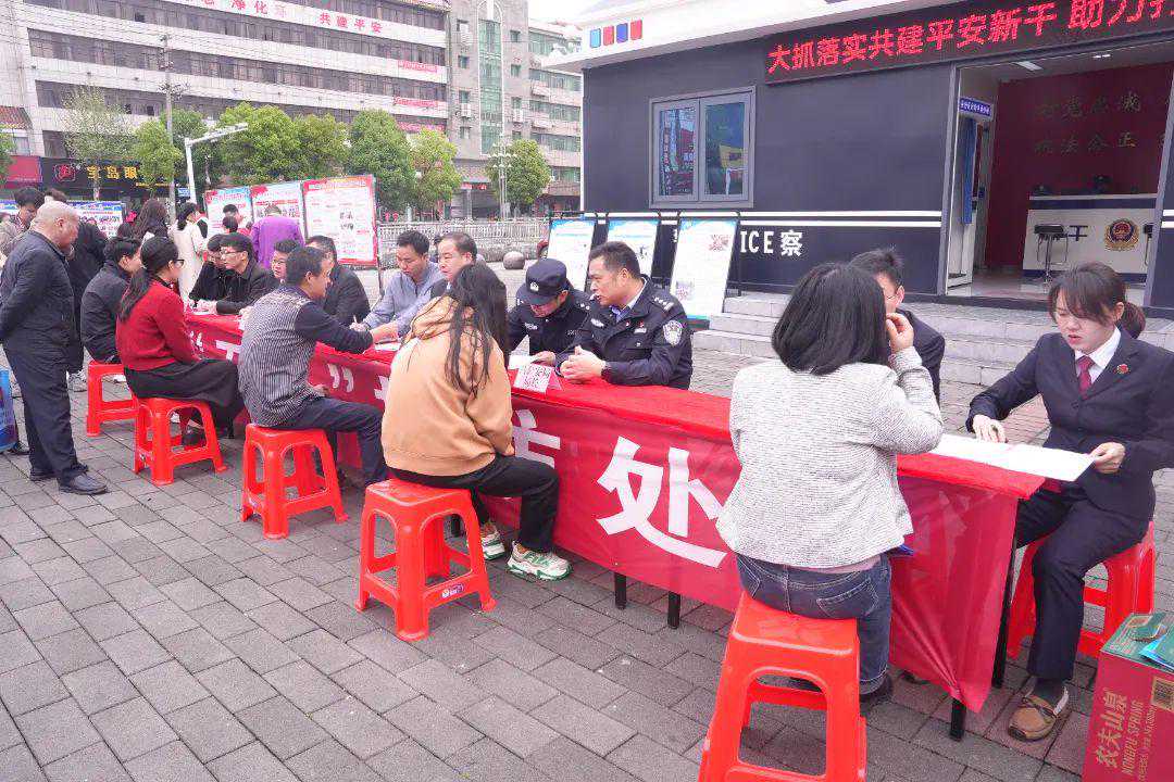 为进一步提升广大人民群众对平安建设、法治建设的知晓率、参与率、满意率,营造全社会共同参与、积极支持、齐抓共管的社会治理和平安建设的良好氛围。4月9日上午,我县在县城金川广场开展以“大抓落实共建平安新干,助力打好‘十大攻坚战’”为主题的平安建设集中宣传活动。县委常委、政法委书记刘树儒,副县长、公安局长曾红根及法、检、司“三长”在现场接待群众来访。