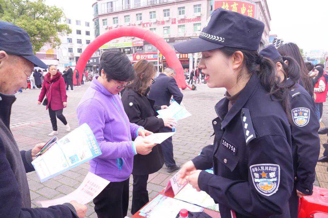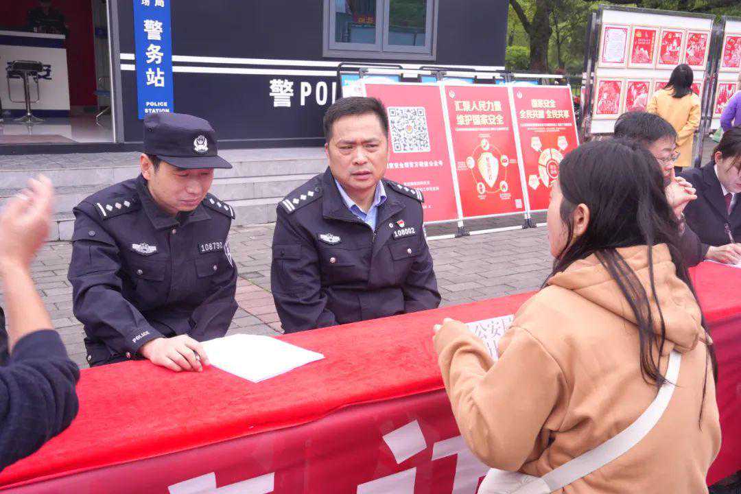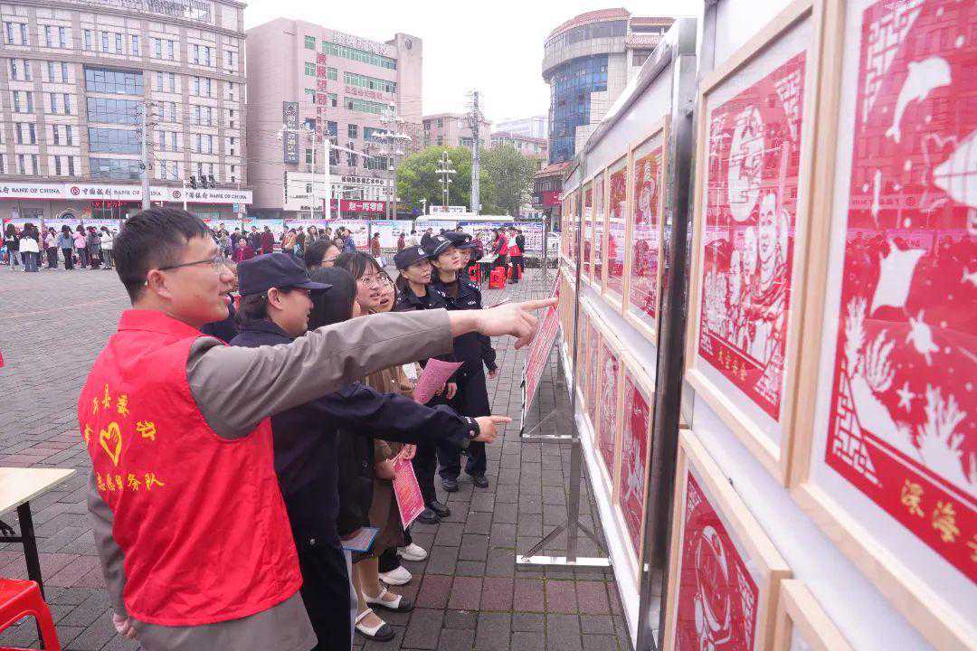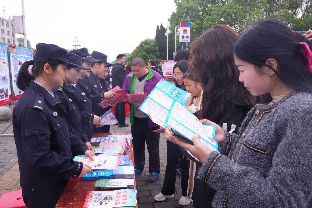 活动现场,县公安局刑警大队、禁毒大队、治安大队、出入境管理科、森林分局等警种在现场“摆摊设点”,通过“非遗”剪纸展览、设立咨询服务台、悬挂宣传横幅、发放宣传资料、解答群众疑问等多种形式,向广大群众普及相关政策法规,向过往市民宣传反诈、禁毒、法治、交通安全、平安建设等相关知识。