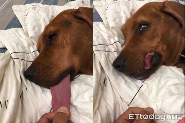 睡到舌头都被偷走啦!饲主JoyceChang日前分享一段有趣的影片,只见米格鲁「比利」在床上睡得正熟,甚至微露出一点粉红舌头,让贪玩的主人忍不住将舌头「无限延长」,惊人长度让网友笑翻表示,「在拉口香糖吗?」