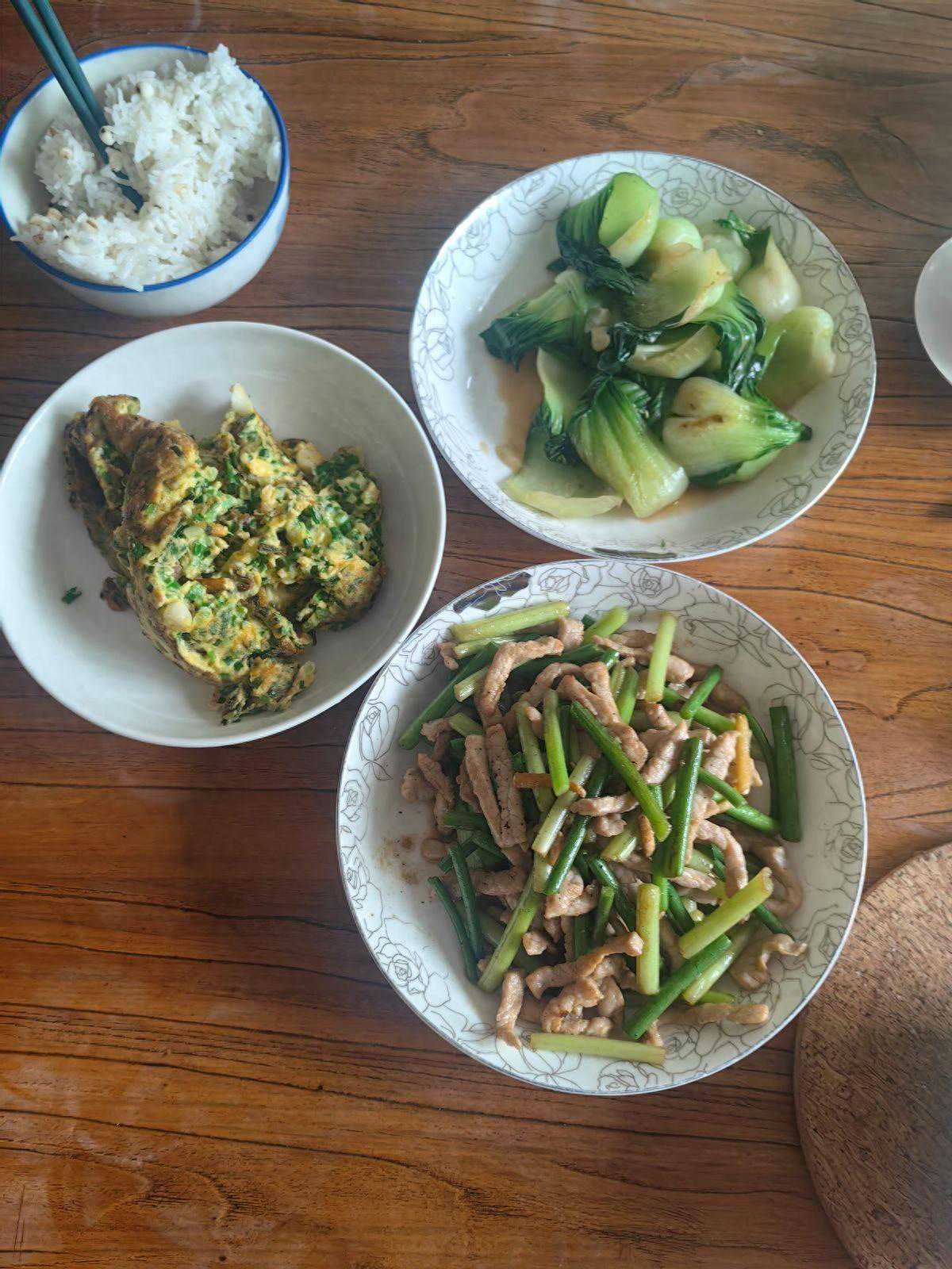 厨房的小蒜是邻居送的。昨晚烧完纸因为太难受了我先上楼了,她俩去买薯片。回家以后媳妇说楼下遇到个邻居打招呼,问要不要小蒜。媳妇说看着她挺熟悉的,好像是隔壁邻居可又确认不了。问了一下体貌,应该是隔壁的。后来就送来一袋子小蒜,应该是春游在地里挖的。那我是炒鸡蛋呢还是腌小蒜呢?