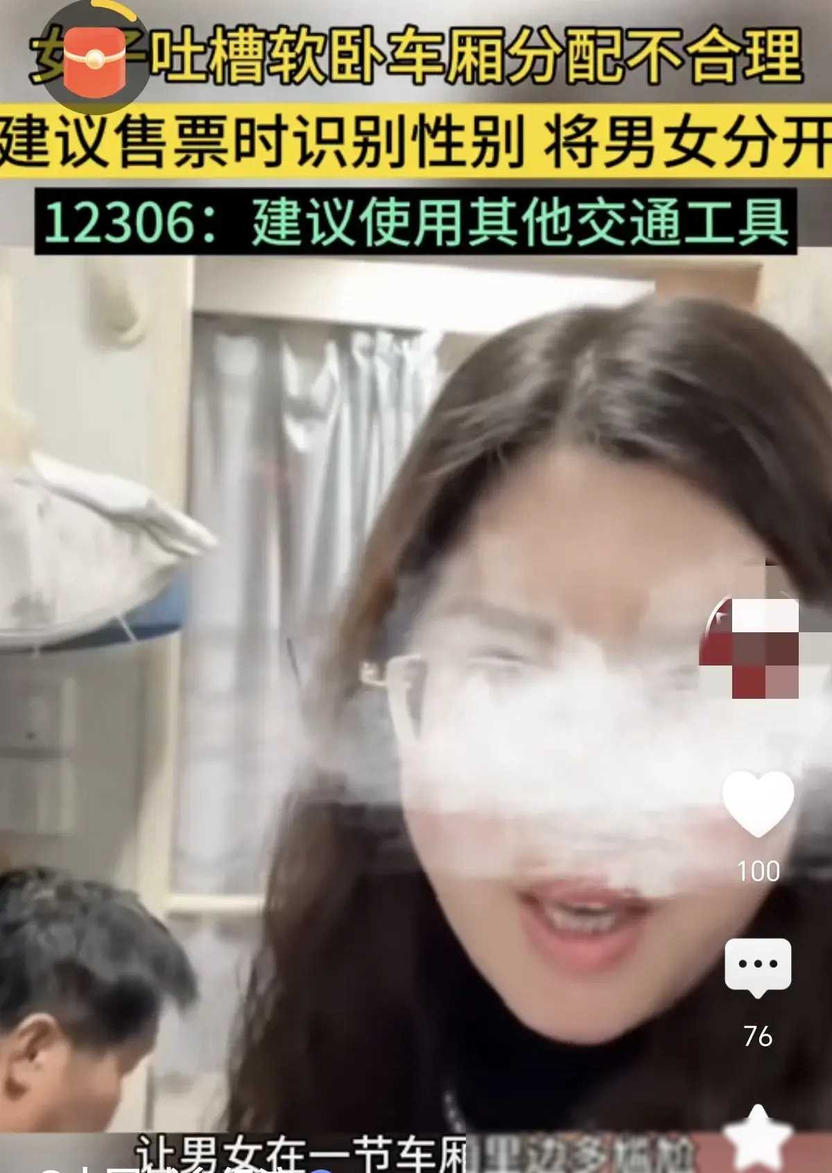 部分网友对女子的安全担忧提出了质疑。他们认为,在中国,火车上有乘警和列车员,乘客的安全问题并不严重。此外,按性别分配车厢也会导致资源浪费,不符合实际情况。