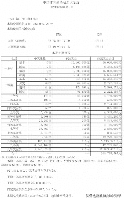 今天是2024年04月03日,大家熟悉的大乐透24037期开奖啦。