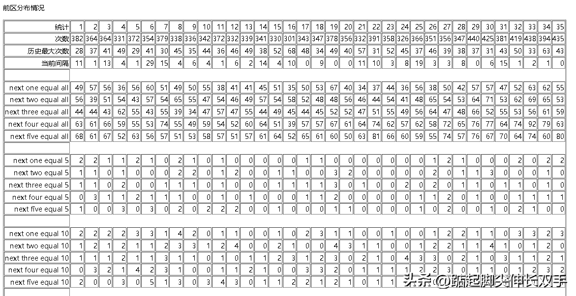 本期奖号走势特点:和值偏大,最大开出的号是35;3余0开出了零个,3余1开出了19一个,3余2开出了17202935四个。下期看好和值增大,和值60~130之间,首位跨度在16~32之间。