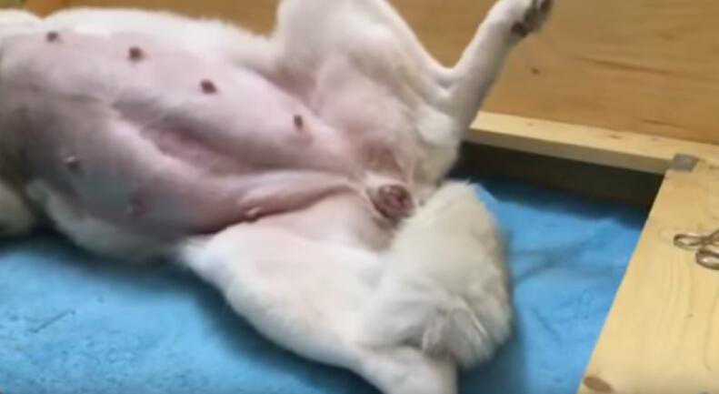 再把小狗狗拉出来一点点,太帖近着狗妈妈的身子了,需要给小狗狗做进一步的处理。